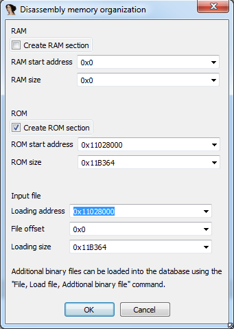 在“反汇编内存组织”对话框中,我不确定要设置什么。